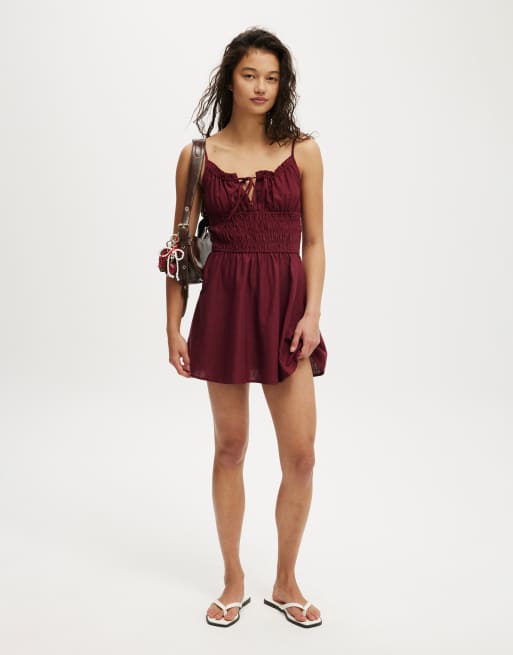 Cotton On Haven strappy mini dress in burgundy