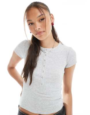 Cotton On henley short sleeve tee in grey marle