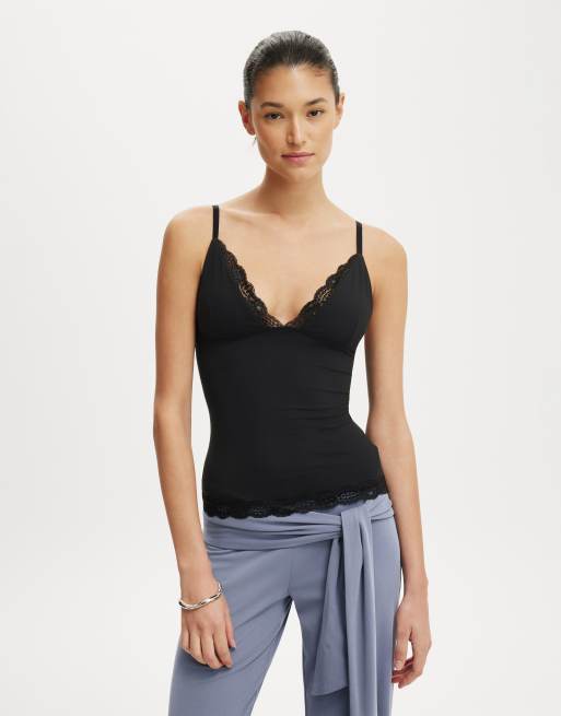 Cotton On Hold me lace trim cami in black