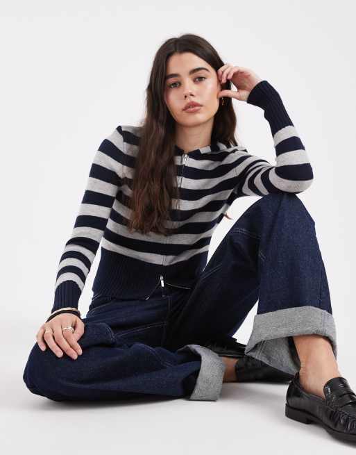 Cotton On hooded zip up knit in navy grey stripe