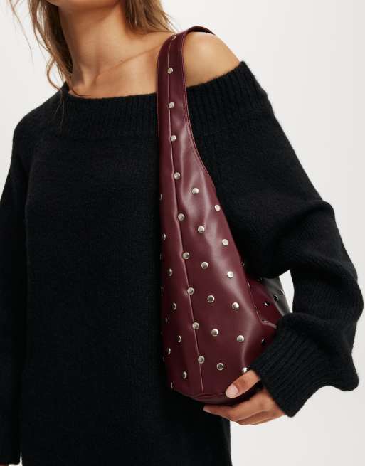 Cotton On Lia studded bucket bag in burgundy