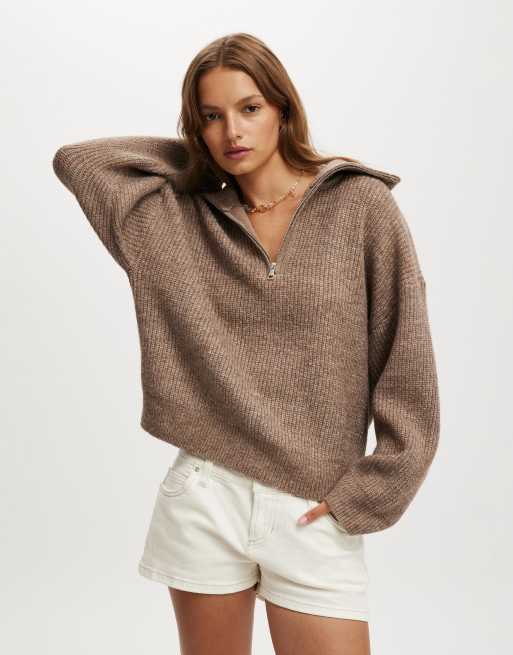 Cotton On Luxe half zip pullover in brown