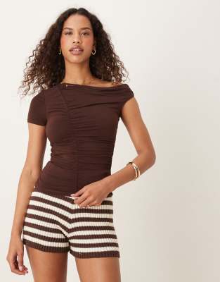 Cotton On Nikki gathered short sleeve top in burgundy