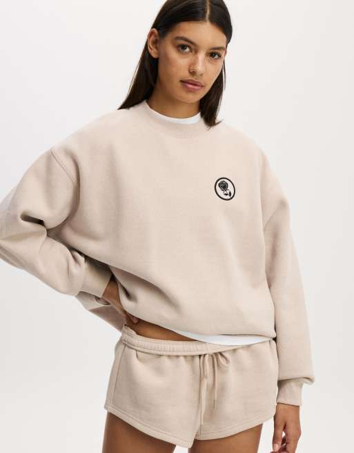 Cotton On Plush graphic crew sweatshirt in beige