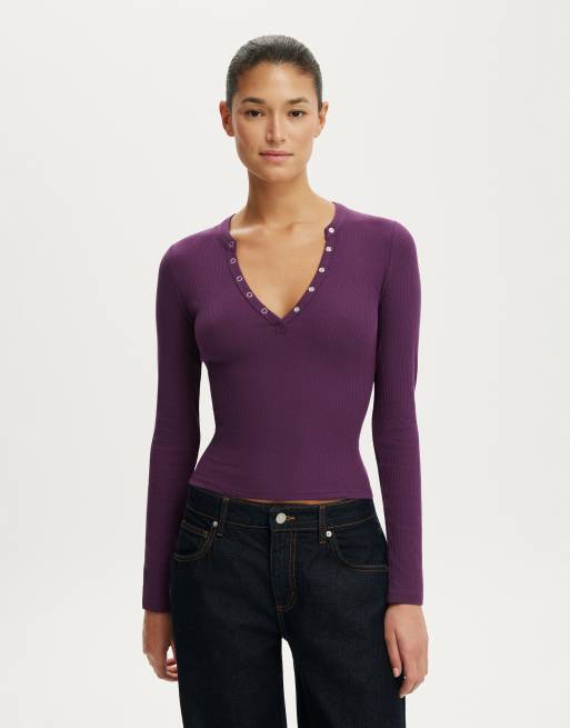 Cotton On Ryan henley long sleeve in purple