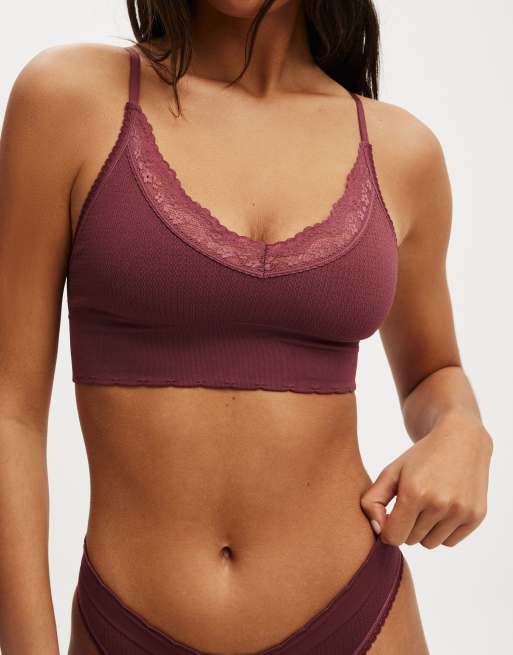 Cotton On Seamless longline lace trim bralette in brown