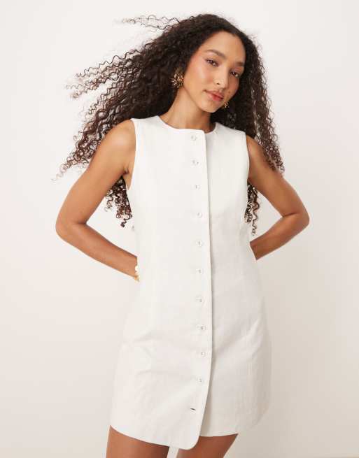 Cotton On Sienna linen button up dress in white