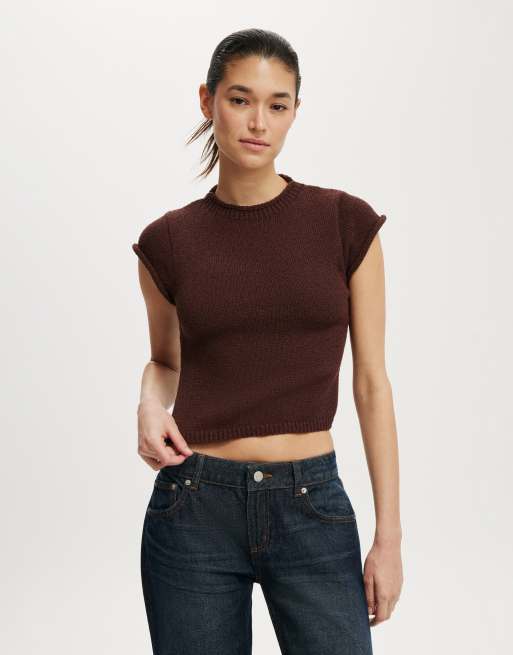 Cotton On Textured shortsleeve knit top in brown
