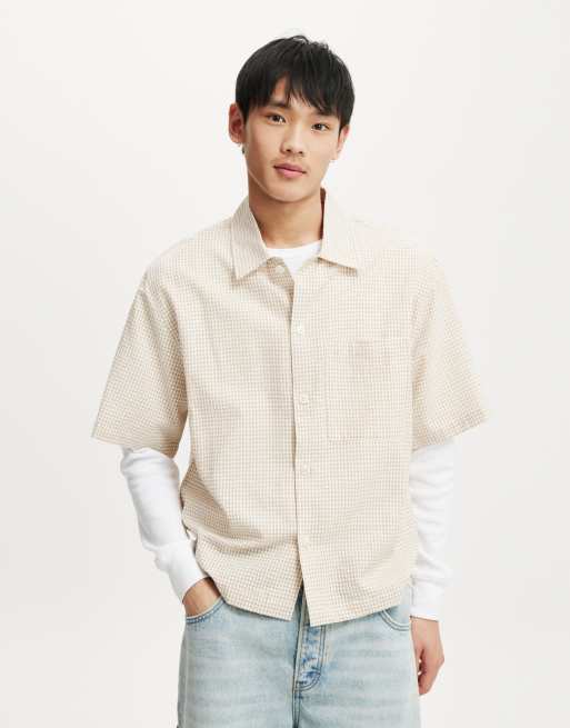 Cotton On Ventura short sleeve shirt in stone micro check