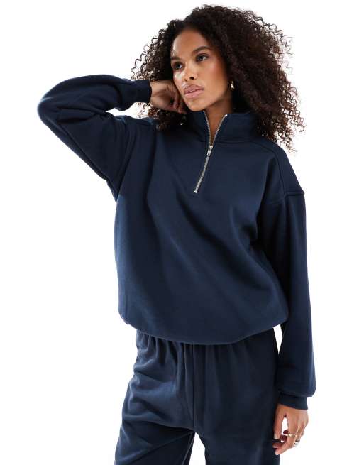 Cotton:On Classic fleece oversized half zip sweatshirt in blue