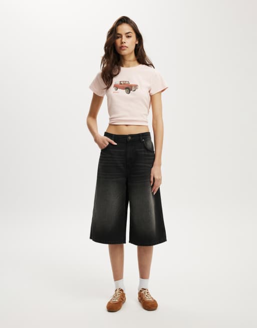 Cotton On 91 baggy denim jort in black