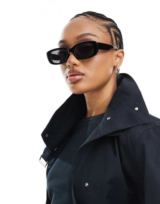 Cotton On abby rectangle sunglasses in black