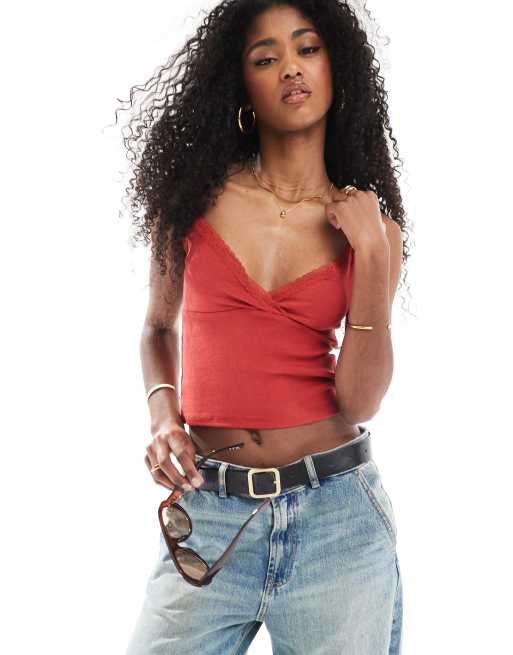 Cotton On Clare lace trim tank in red