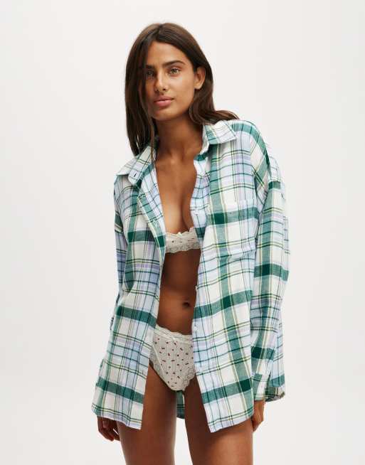 Cotton On Flannel boyfriend long sleeve shirt in navy