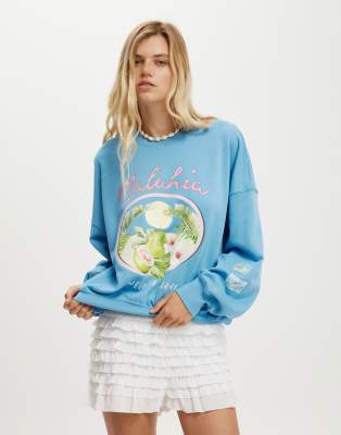 Cotton On Fleece graphic crew sweatshirt in blue