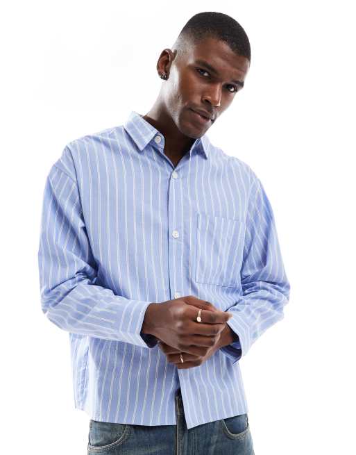 Cotton On Hampton long sleeve shirt in soft blue stripe