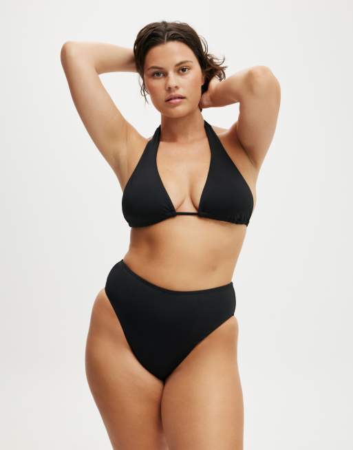 Cotton On High apex slider triangle bikini top in black