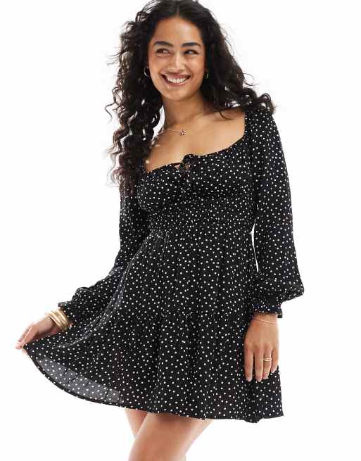 Cotton On valerie long sleeve mini dress in black
