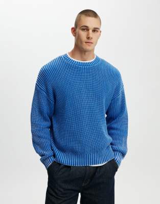 Cotton On Washed box fit crew knit in blue