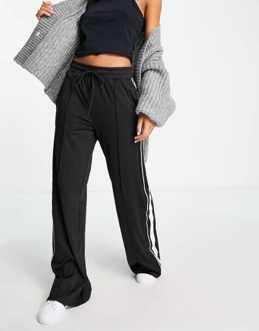 Cotton On wide leg track pant with side panel in black