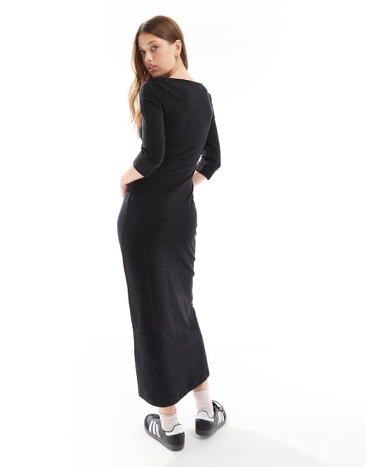 Cotton:On Bella 3/4 sleeve maxi dress in black