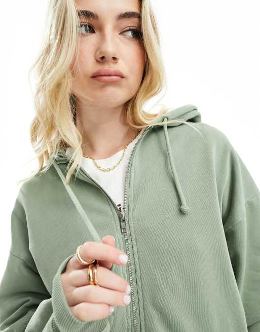 Cotton:On Classic Washed Zip-Through Hoodie in sage green