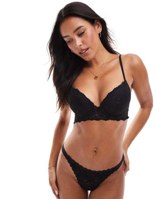 Cotton:On Everyday lace longline push up 2 bra in black