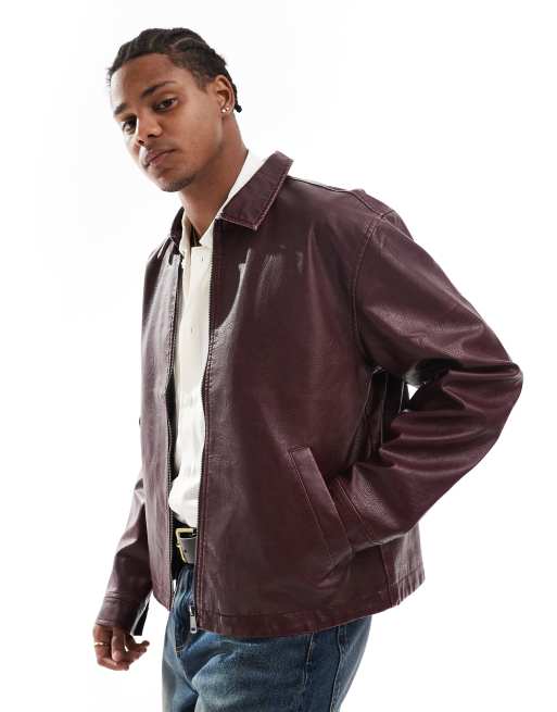 Cotton:On Faux leather harrington in burgundy