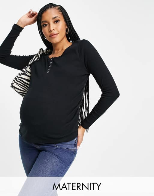 Cotton:On Maternity henley long sleeve top in black
