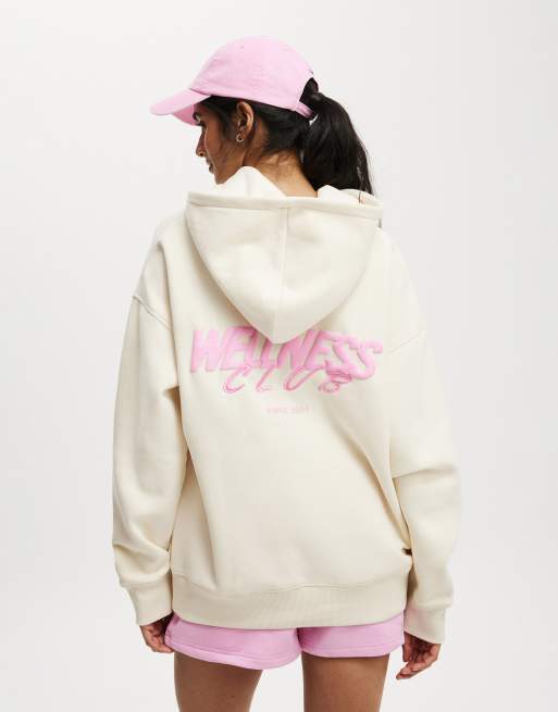 Cotton:On Plush premium graphic hoodie in off-white