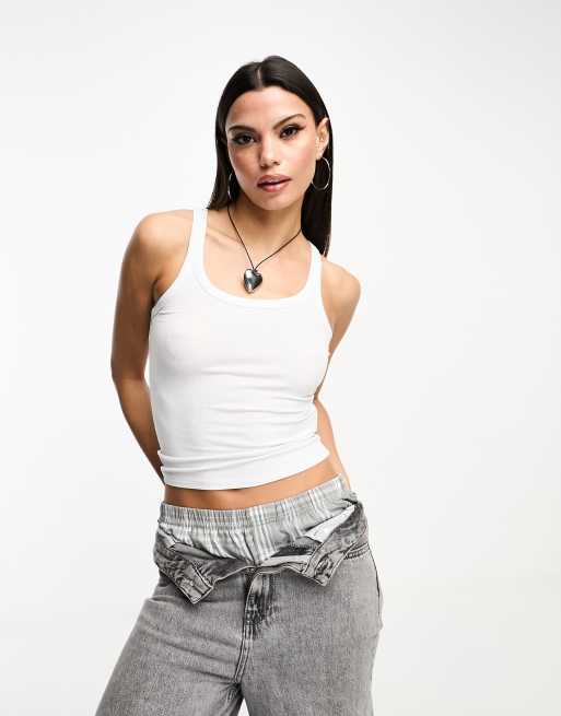 Cotton:On rib scoop neck tank top in white