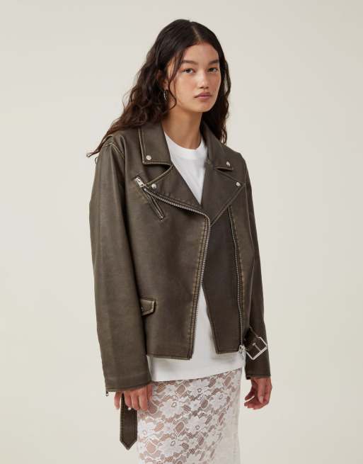 Cotton:On Roman faux leather biker jacket in mottled brown