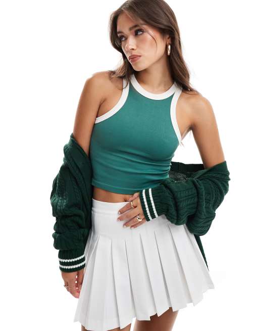 Cotton:On Seamless ringer tank in sporty green/coconut milk