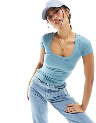 Cotton:On Staple Rib Scoop Neck Short Sleeve Top in blue
