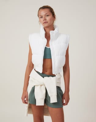 Cotton:On The mother puffer panelled crop vest in white