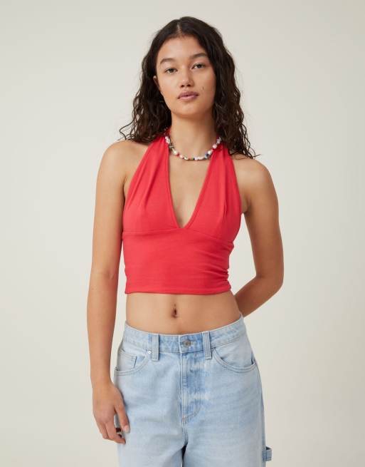 Cotton:On Tory v neck halter top in firey red