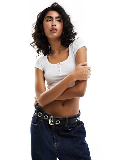 Cotton:On Waffle Short Sleeve Henley top in white