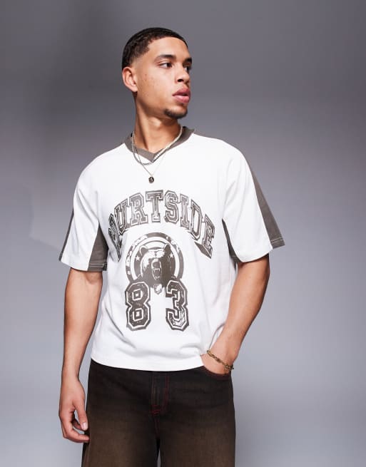 Courtside motif detail contrast panel oversized t-shirt in cream