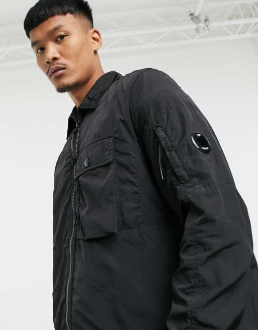 C.P. Company zip through chrome fabric arm lens jacket in black