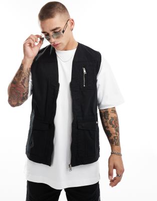 Criminal Damage cargo vest with army pockets in black