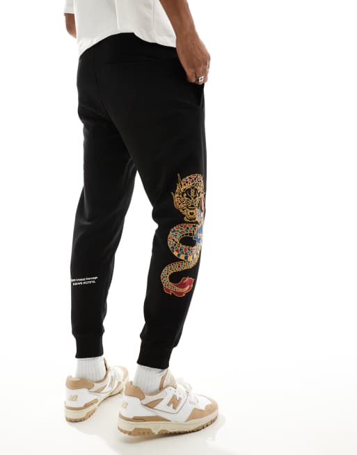 Criminal Damage dragon detail embriodery joggers in black