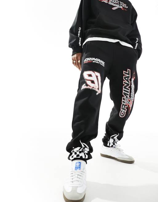 Criminal Damage heavyweight hoodie & joggers with racing graphics in black