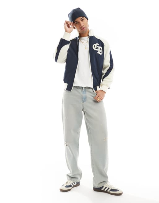 Criminal Damage Micro sherpa & nylon tracksuit jacket navy in navy