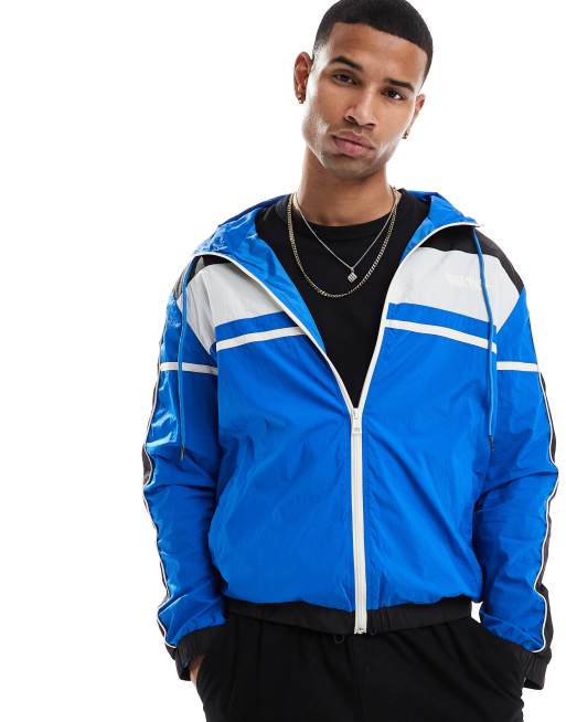 Criminal Damage Nylon colour block track jacket b/b/w in black/blue/white