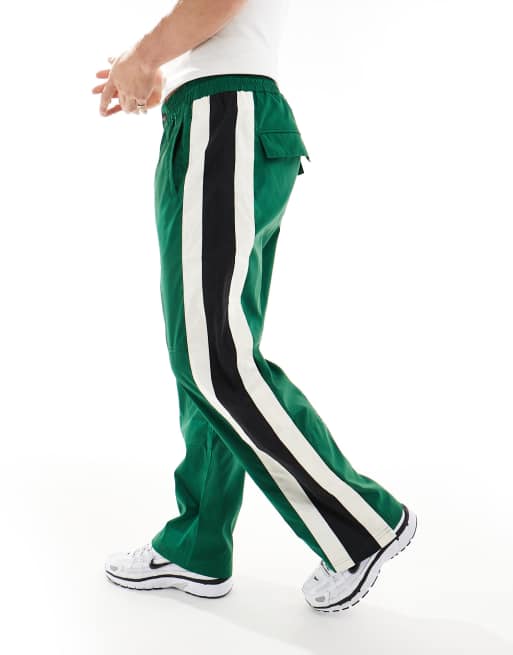Criminal Damage Snap vent cargo pant green/off white/blackstripe in green/off white/blackstripe