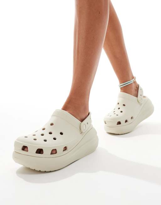 - Known for their signature shape and colourful designs, Crocs’ iconic shoes are making a comeback. Made with waterproof materials, moulded footbeds and lightweight foam cushioning, the brand’s slip-on sandals are designed to be super-comfortable and supportive for your feet (because they deserve it). Scroll our Crocs at ASOS edit for everything from tie-dye classic clogs, chunky platform styles and faux-fur lined Crocs, to marble sliders and branded socks. Solemate: found.