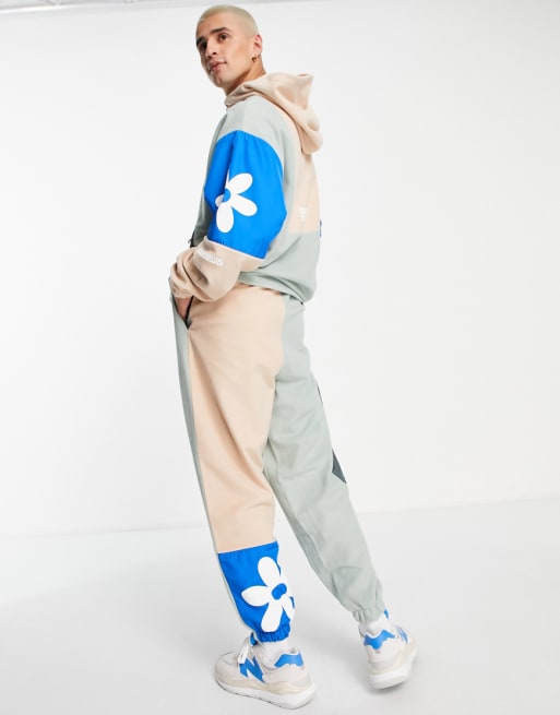 Crooked Tongues co-ord fleece colour blocking with daisy print in multi