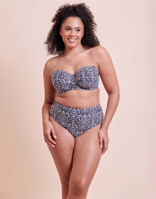 Curvy Kate Wild horizon bandeau strapless multiway bikini top in black print