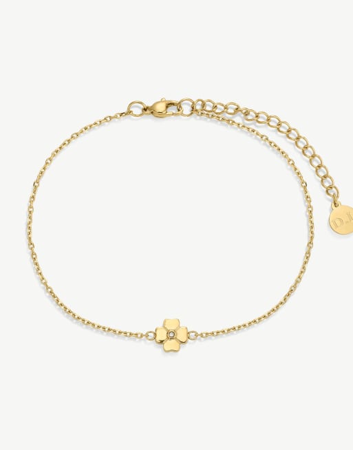 D.LOUISE Bridesmaid waterproof lucky clover bracelet in gold