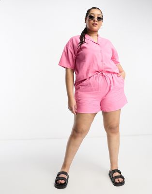 Daisy Street Plus linen relaxed boxy shorts in pink co-ord